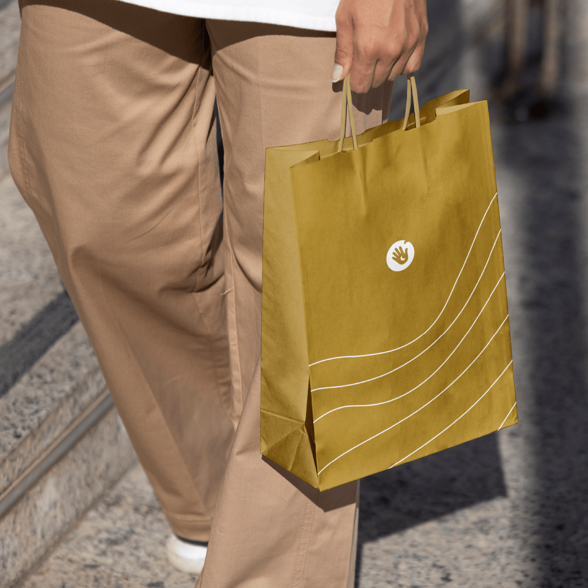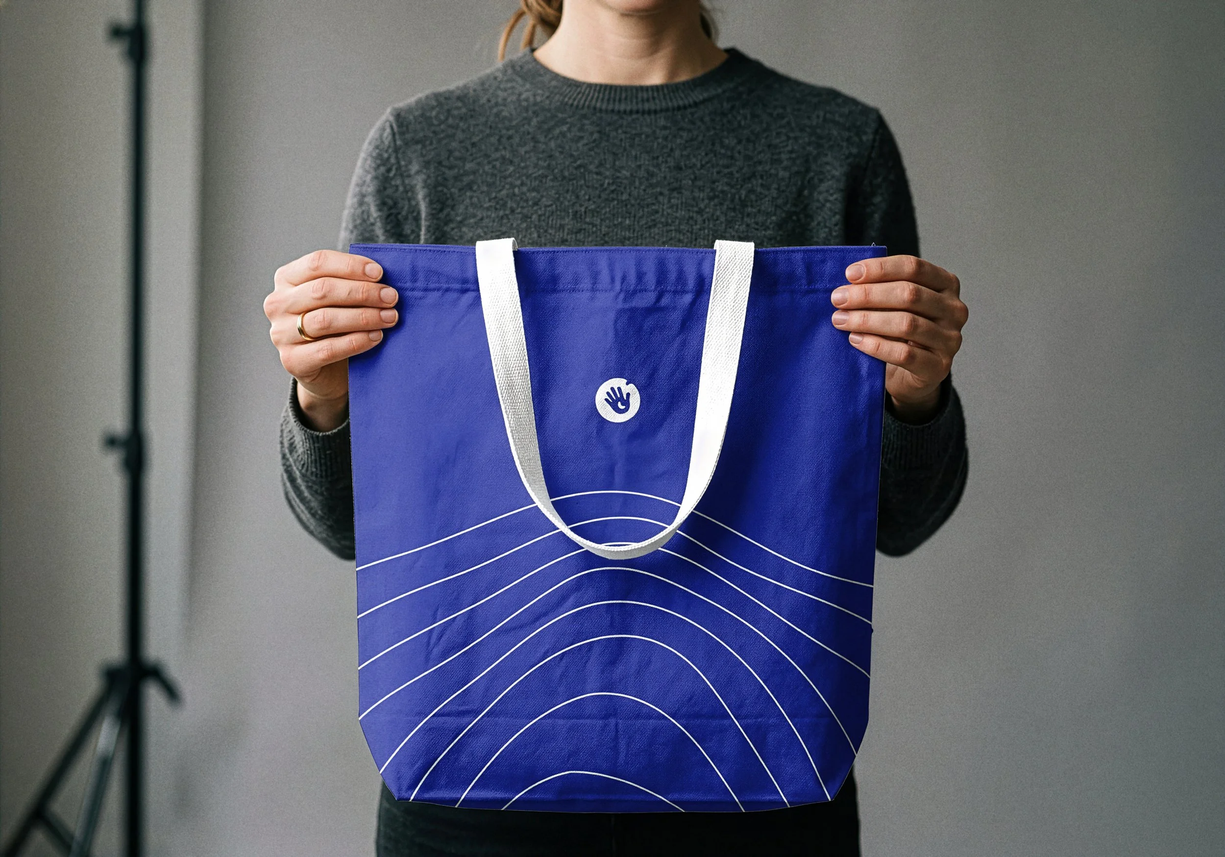 At the center of the identity is the logo, designed as a clean and memorable form. The symbol is built around a hand, representing care, connection, and approachability. At the same time, it reads as a friendly gesture, almost like saying hello.